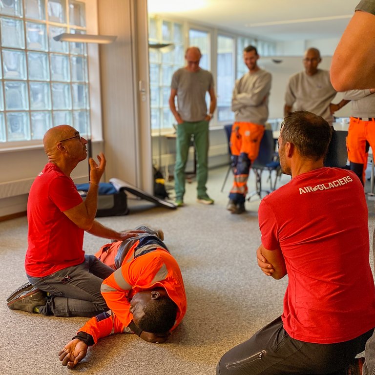 Tous les deux ans, ils entraînent les gestes qui sauvent en conditions réelles, que ce soit au bureau, au fond d’une fouille ou même dans la vie quotidienne. Massage cardiaque, immobilisation d’un membre, arrêt d’une hémorragie, soin d’une brûlure ou reconnaissance des signes d’un AVC font partie des gestes exercés durant le cours.