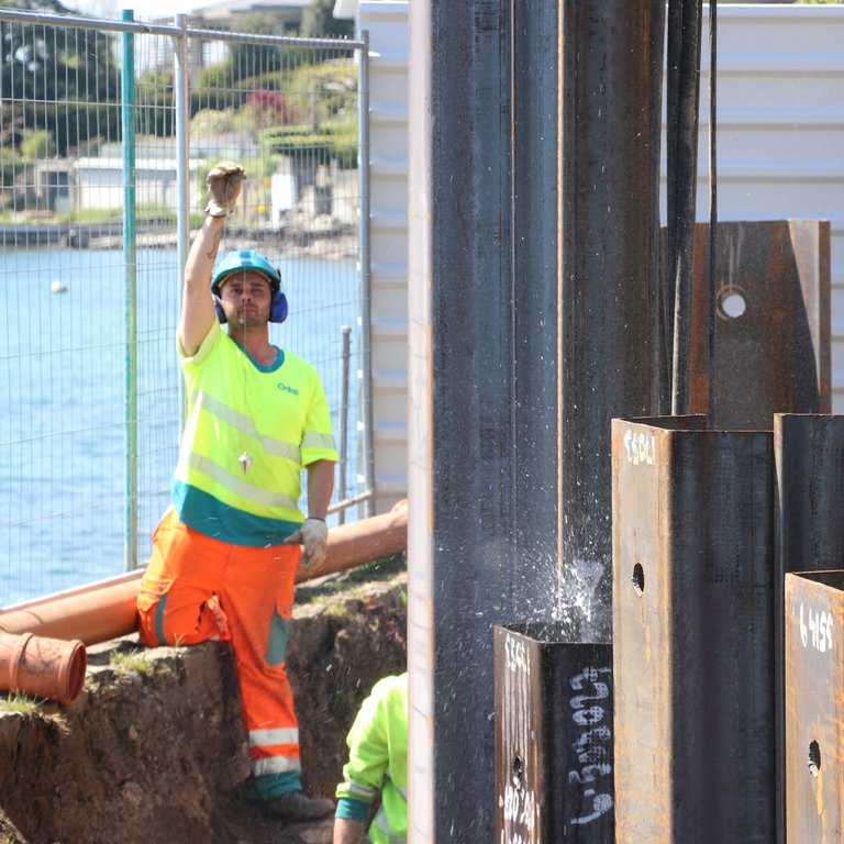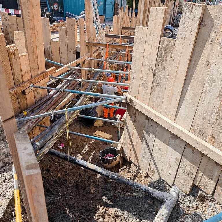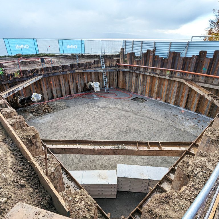 Mises ensemble, elles créeront à la fois une paroi étanche et un mur de soutènement qui permettront de construire la station de pompage. Les palplanches seront ensuite retirées du sol à la fin du chantier.