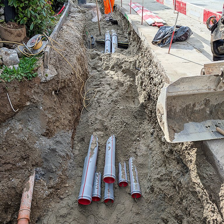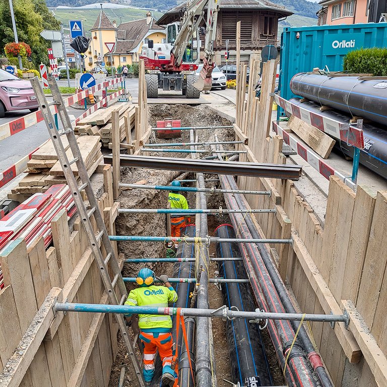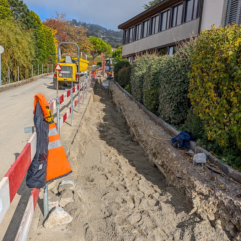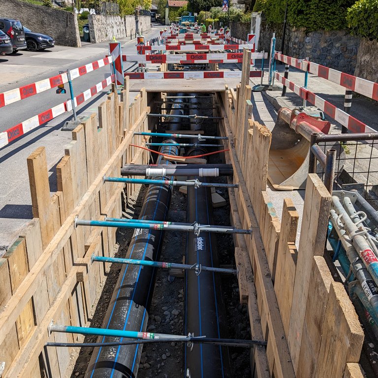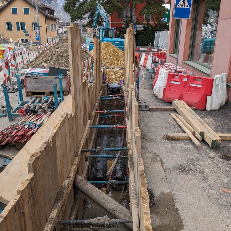 En parallèle, les fouilles ont avancé du côté de la route de Lausanne, où 250 m de conduites ont désormais été posés. Ces travaux sont effectués en collaboration avec le Groupe Orllati SA.