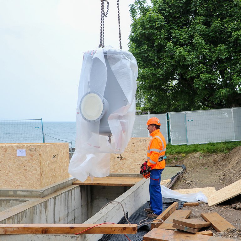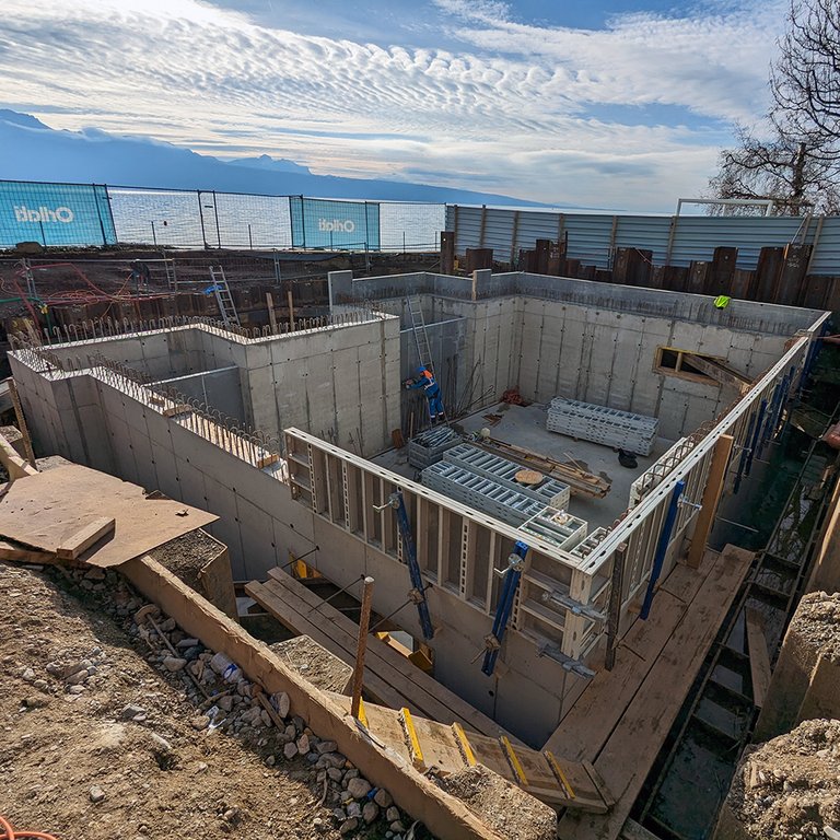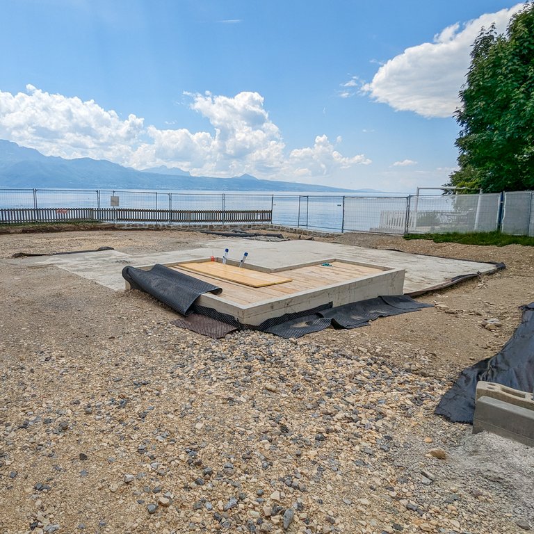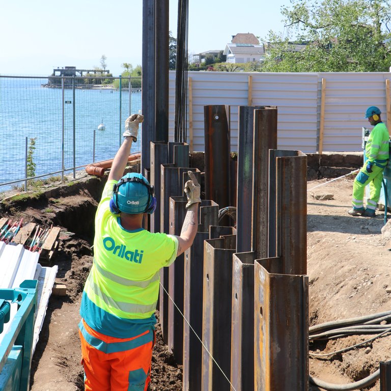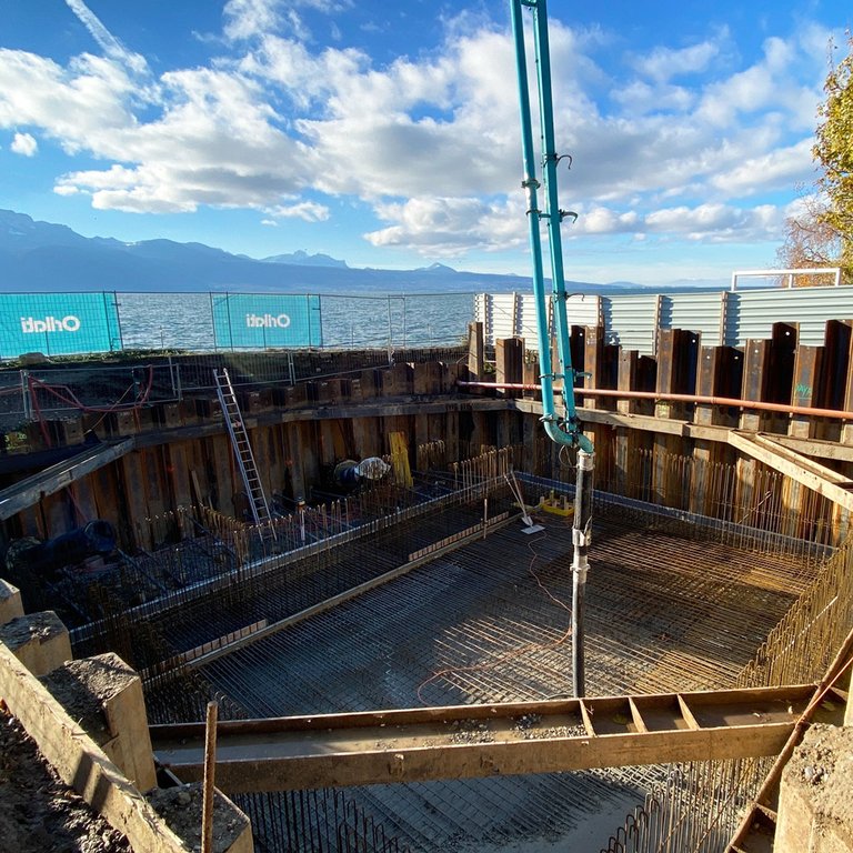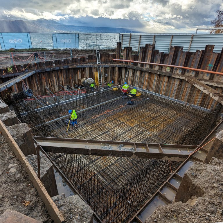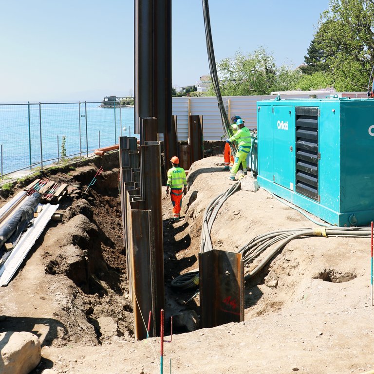 Le coup d'envoi de la construction de la station de pompage et d'échange (STAPE) sous la plage du Bain des Hommes a été lancé le 11 avril. Elément central du réseau de chauffage à distance, cette installation permettra de pomper l'eau du lac pour l'acheminer dans les bâtiments reliés.