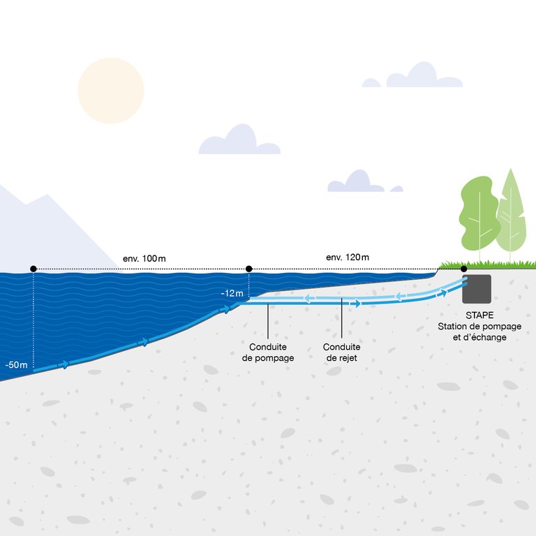 D'ici à la fin de l'année, la conduite de pompage sera encore prolongée et posée le long du relief lacustre, à environ 50 m de profondeur.