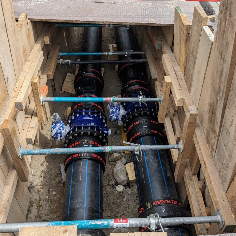 En parallèle, des conduites similaires ont été posées près de la Station de pompage, permettant de relier des tronçons réalisés l'été dernier.