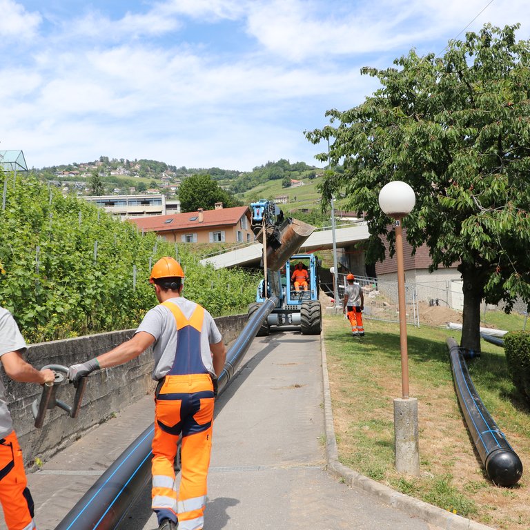 La pose des 120 m de conduites sur le tronçon reliant la Route de Grandvaux à la gare de Cully est terminée.
