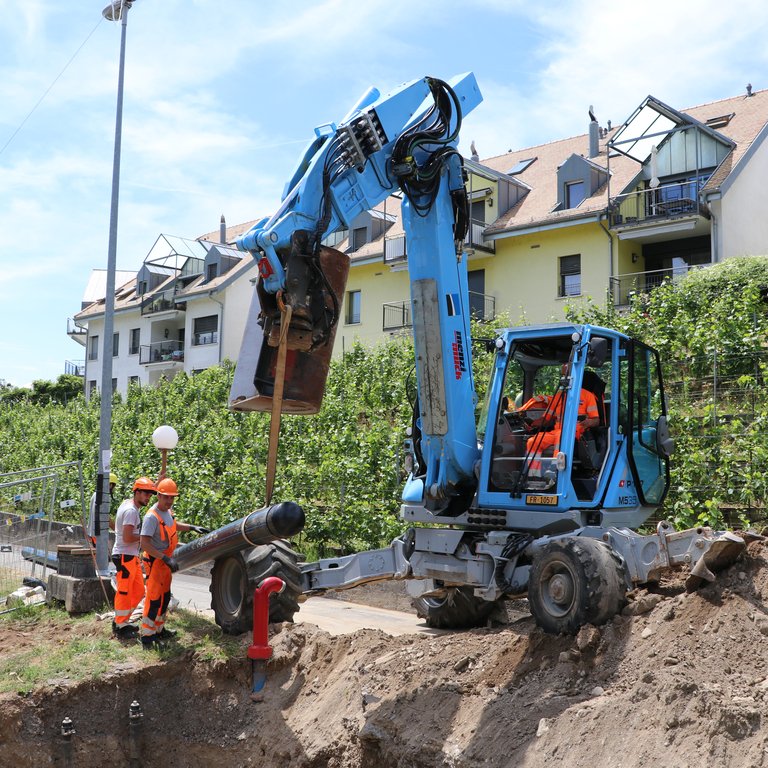 Nos collaborateurs ont commencé à poser les conduites sur le Sentier des Champs, en contrebas de l'Hôpital de Lavaux.