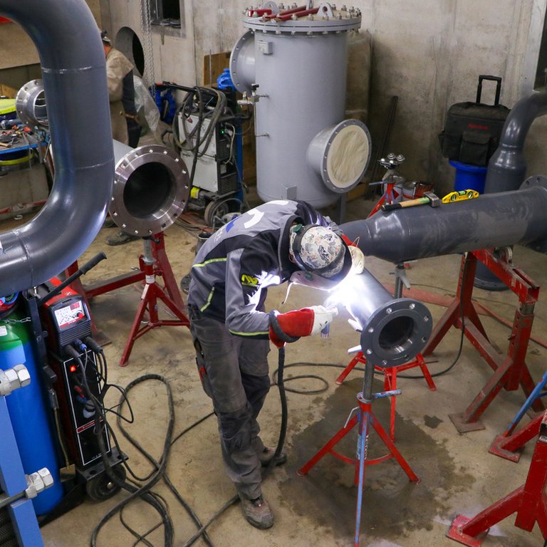Les travaux avancent également du côté de la STAPE, qui accueille une installation complexe. Roos Ventilation, société du groupe Holdigaz, a posé les conduits d'aération, tandis que Joseph Diémand, autre société du groupe, s'est occupée d'installer une pompe de relevage pour évacuer les eaux usées.