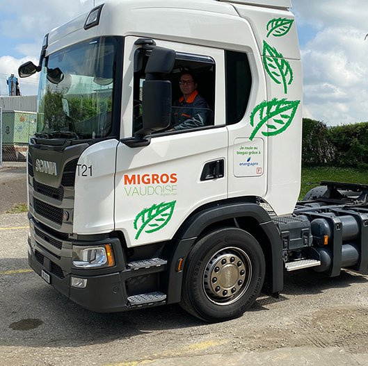 Transports publics VMCV SA et Migros Vaud ont complété leur flotte par des véhicules roulant à 100% au gaz renouvelable !