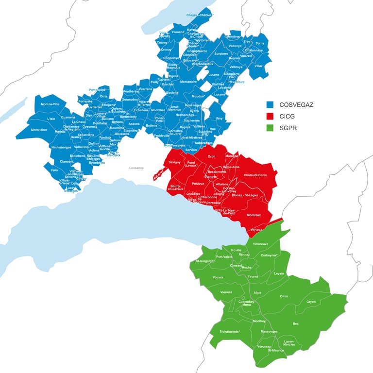 Les sociétés de réseaux se répartissent quant à elles trois zones reliées entre elles, totalisant quelque 1'800 km de conduites :
